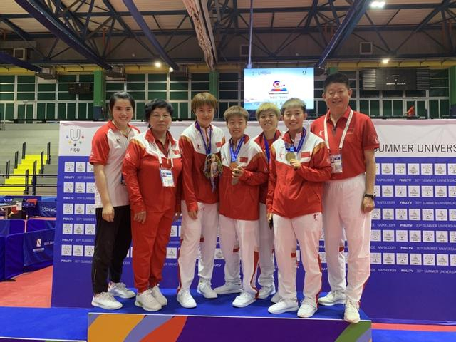 如今的教练组中,留校任教的马越斐是华理乒乓球体教结合“一条龙”模式培养的优秀典范。她曾作为大学生运动员参加过四届世界大学生运动会,从自己拿冠军到带队员拿冠军,她也从臧玉瑛的弟子成为与老师并肩作战的同行。